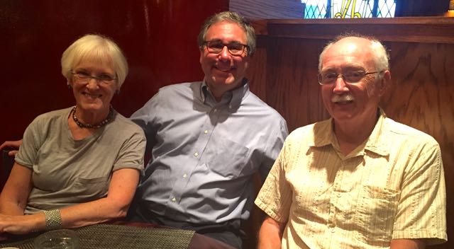 Ivan Arenson, a business school classmate of Pat, joined us for breakfast in Minneapolis. We had planned to go to a local coffee shop but it had rained overnight and was still raining off and on. So we chose to have a "Brunch" in the hotel. Pat had the corned beef hash, Bill had an egg sandwich.